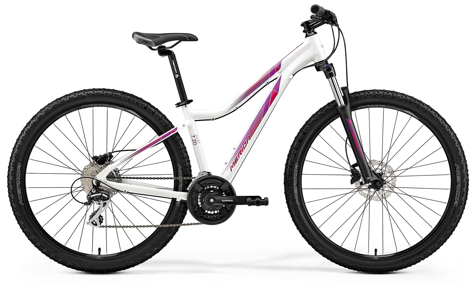 Бренд MERIDA Модель Juliet 7.20-D Тип рамы хардтейл Год 2019 Амортизатор без амортизатора Серия Juliet Материал рамы Алюминий (Alloy) Рама/описание Juliet Speed Тип вилки Амортизационная (масло) Ход вилки, мм от 100 до 150 мм Блокировка амортизатора Да Вилка/регулировки SR Suntour XCM HLO; Coil; 100 STR; Lockout Спицы Black steel Обода Merida CC; 17 IWR Резина Merida K1080; 27.5x2.1; wire / Merida K1080; 27.5x2.1; wire Тормоза Дисковые гидравлические Грипсы Merida EC Тормоз Shimano ST-EF505 RT10; 160 mm / Shimano ST-EF505 RT10; 160 mm Тормозные ручки Shimano ST-EF505 Уровень оборудования Любительский Шифтеры Shimano ST-EF505 Переключатель передний Shimano FD-TY700 Переключатель задний Shimano RD-M360 Кассета Sunrace CSM668; 11-32 ATC; 8 GER Цепь KMC M700 Каретка FSA TH-7420ST-W, Cartridge Bearing Шатуны Shimano TY301; 42-34-24 ATC Количество скоростей 24 Руль Merida CC; 660 WHB; 25 RHB Рулевая колонка FSA NO.10P Neck15 Вынос Merida CC; 31.8 DSH; 17 ASD Седло Merida Juliet Sport Подседельный штырь Merida CC; 27.2 DSP; 15 SSB Педали VP; VPE-891 Втулка передняя Shimano TX505; 100x9 WHF; 32 SPH; Centerlock Пол/возраст Женский Вес 14.38 Втулка задняя Shimano TX505; 135x9 WHR; 32 SPH; Centerlock Кириллическое название Мерида Джульет 7.20 Д 2019 -